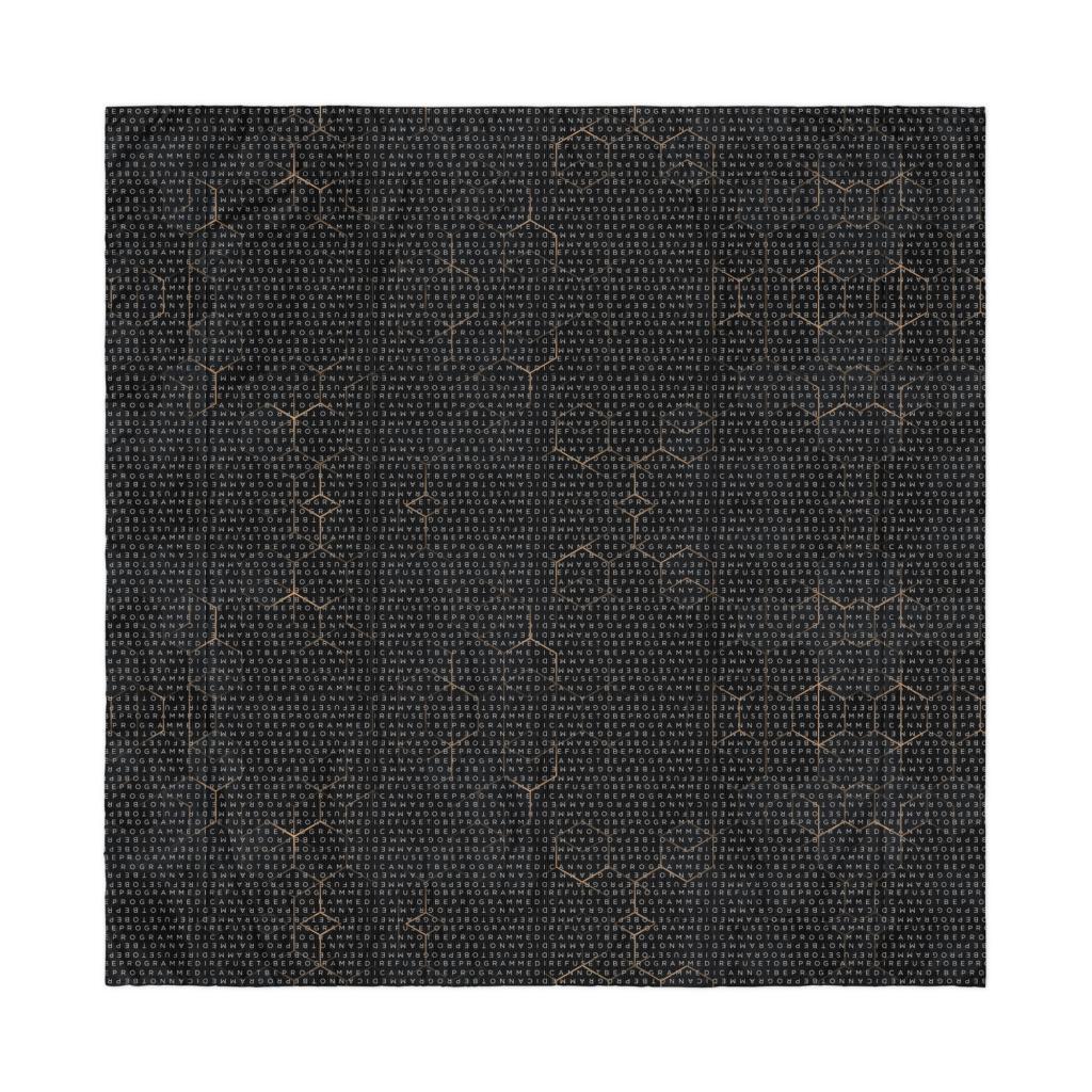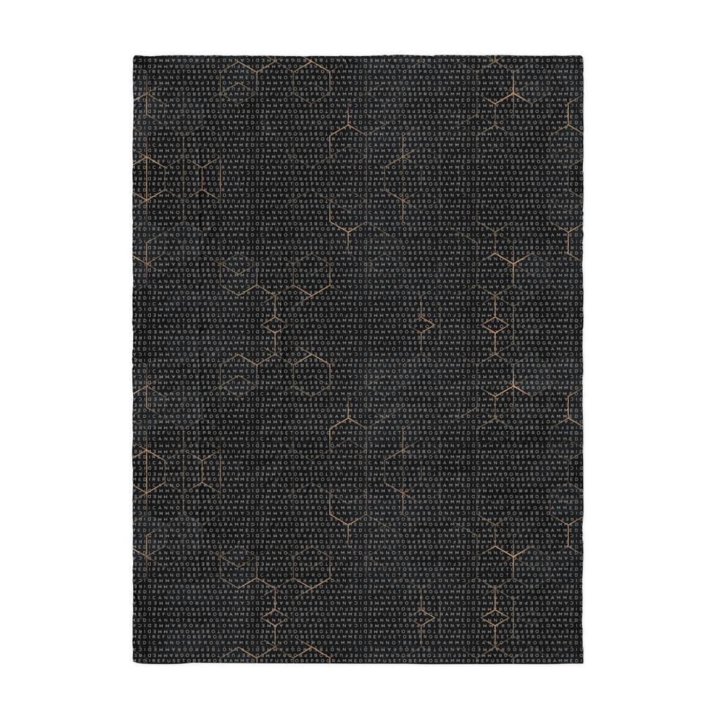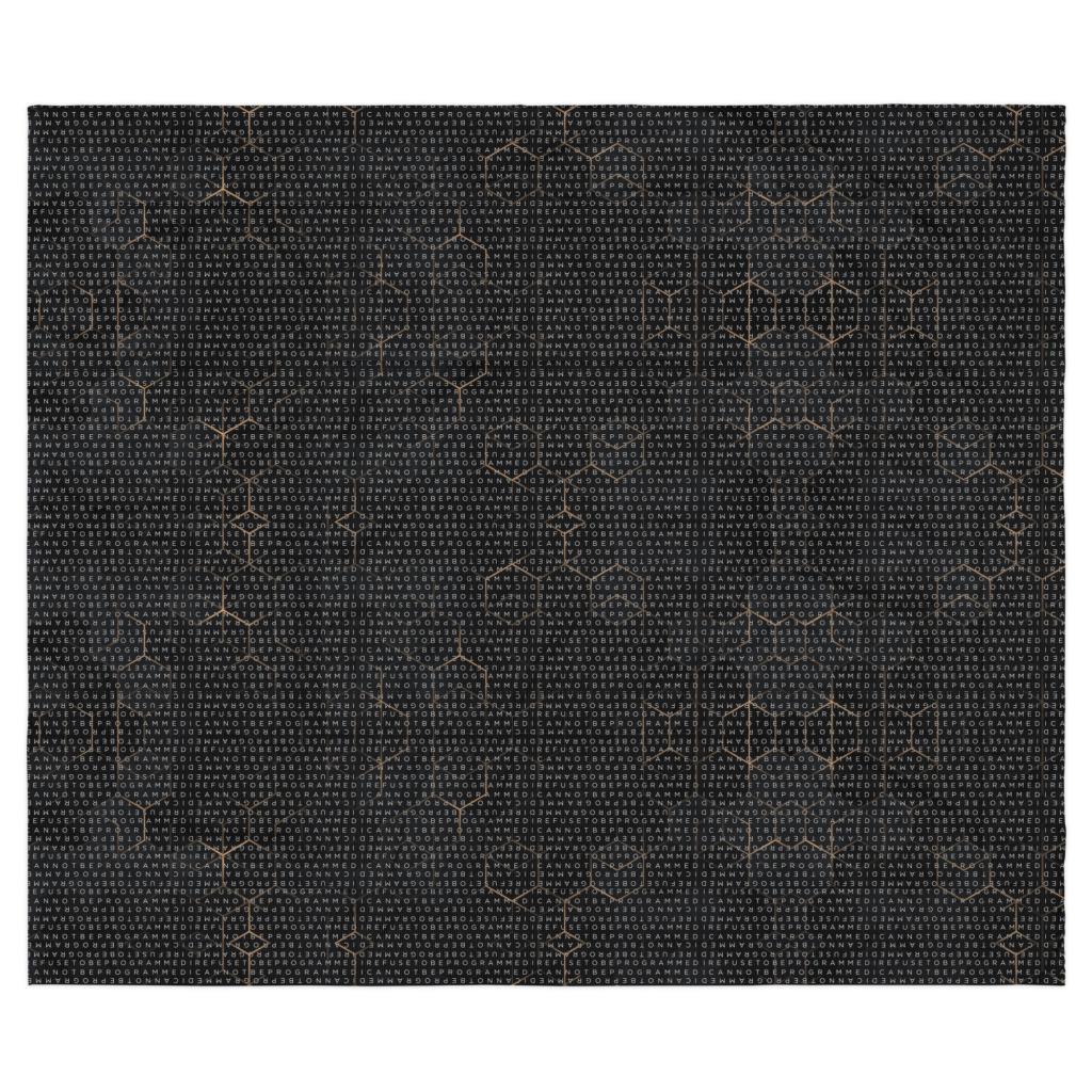 Bundle up and get cozy with this I Refuse to be Programmed white monogrammed lightweight comforter. The comforter features one side that is white and the designed side features the dark golden grid base pattern with the I Refuse to be Programmed/I Cannot be Programmed white monogram reverse jacquard cascading across. Made from an ultra-soft polyester microfiber fabric and filled with 3/4 inch batting that is evenly distributed and held in double square stitching. This will allow you to wrap yourself in warmth with this ultra-soft, lightweight comforter—perfect for lazy mornings or chilly nights in.