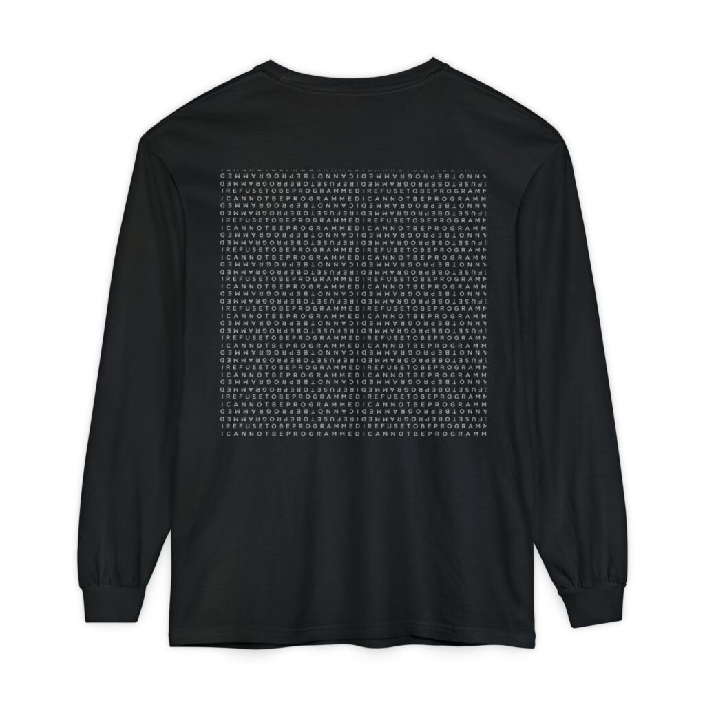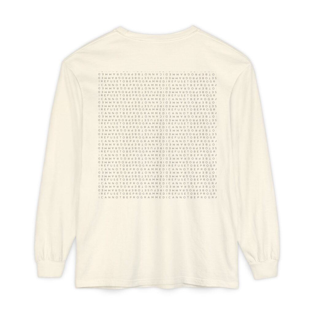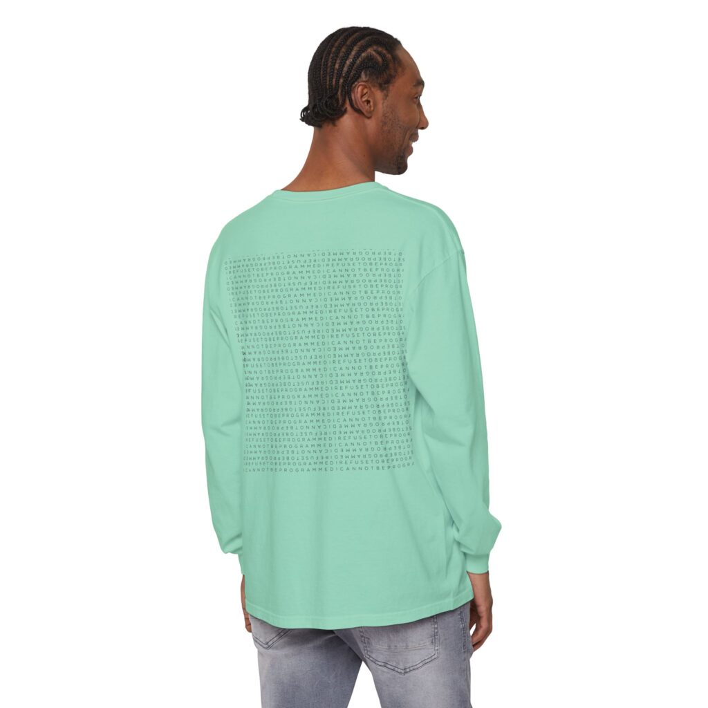 • I Refuse to be Programmed White Monogram Sun Design Long Sleeve Men’s Shirt