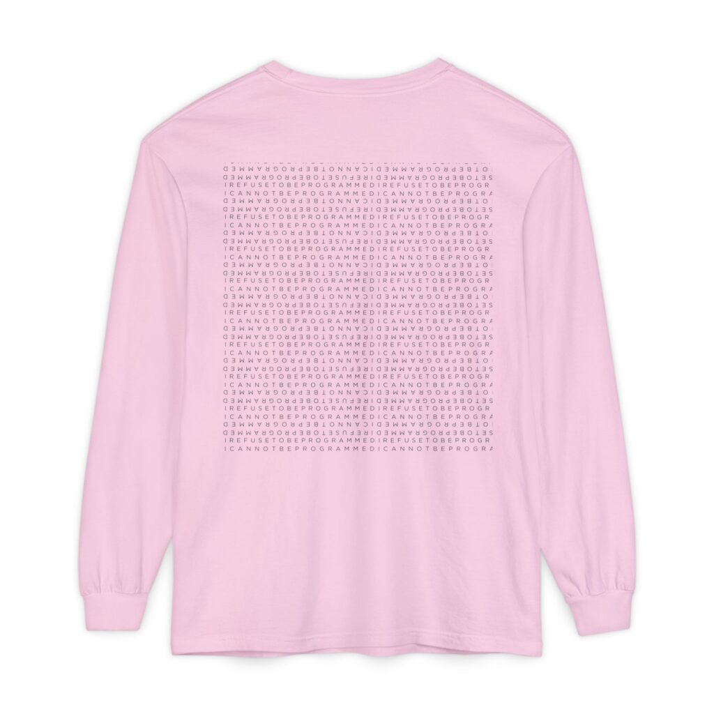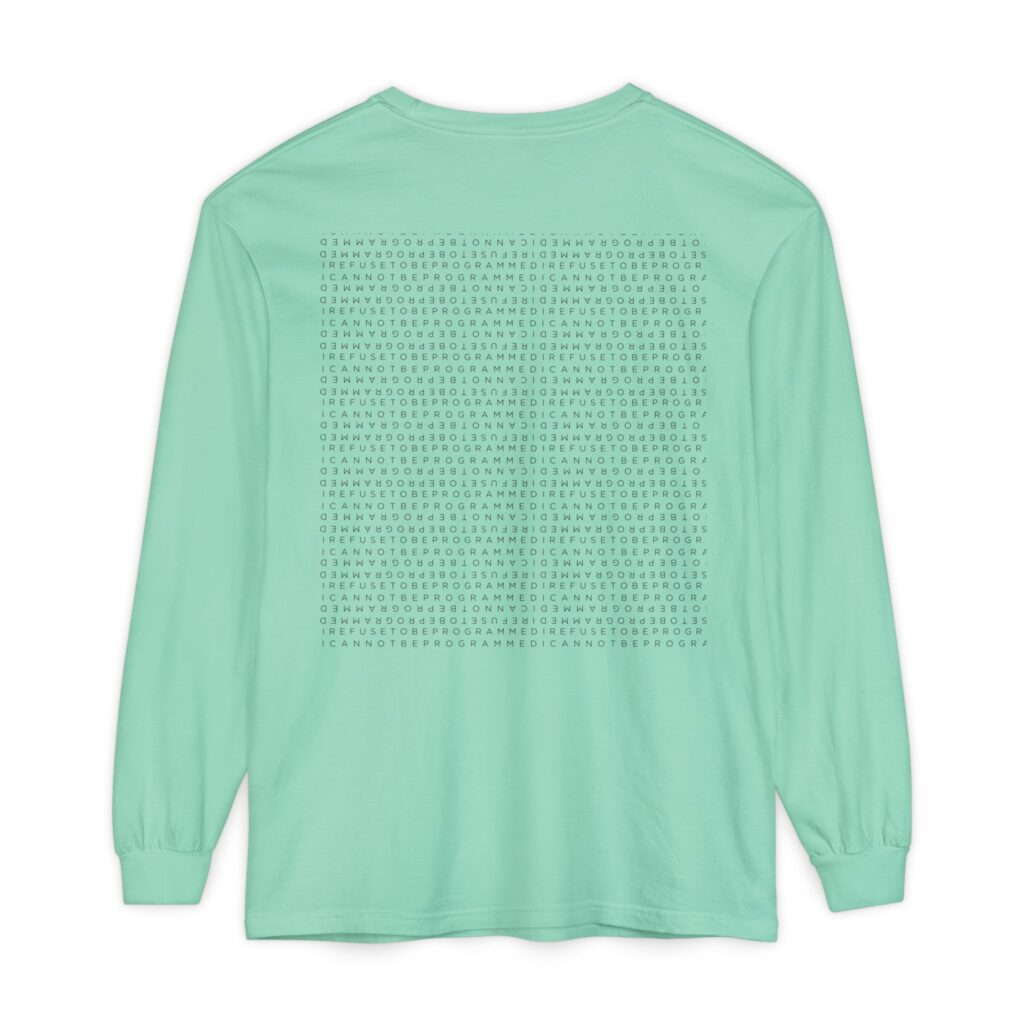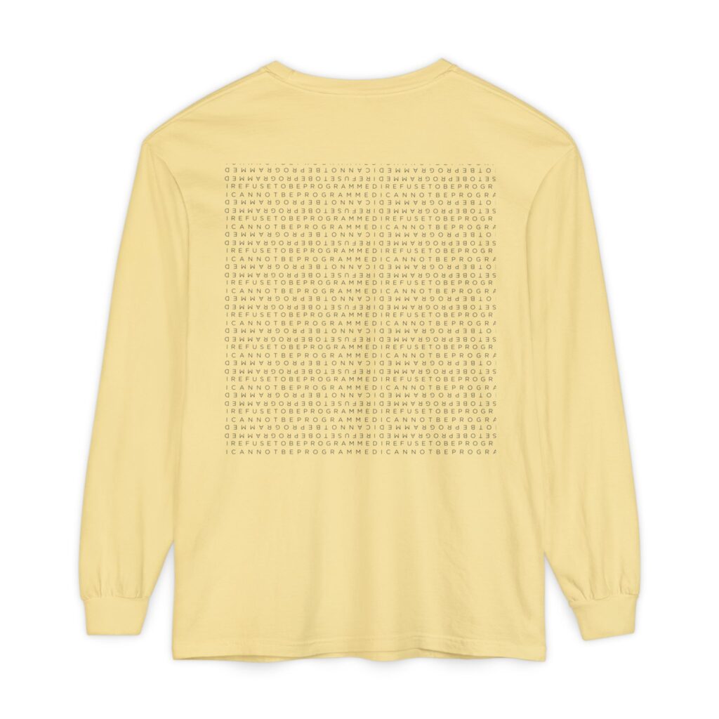 • I Refuse to be Programmed White Monogram Sun Design Long Sleeve Men’s Shirt