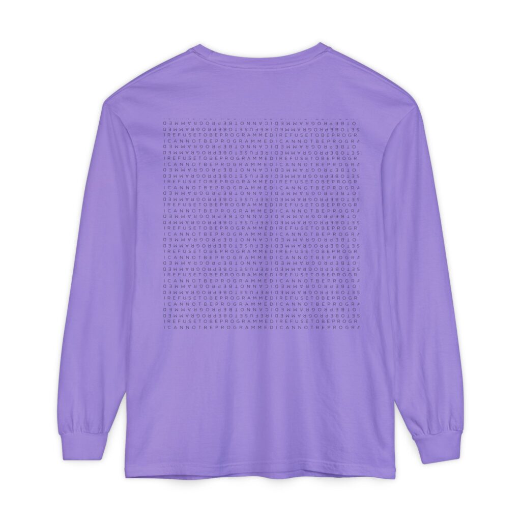 This Men’s I Refuse to be Programmed outline monogrammed long-sleeve shirt offers UV Protection, combines comfort and functionality and provides an athletic edge. Featuring a hemmed sleeve and shoulder tape for added durability, this shirt is ideal for outdoor activities or everyday wear, balancing style and performance in one sleek design.