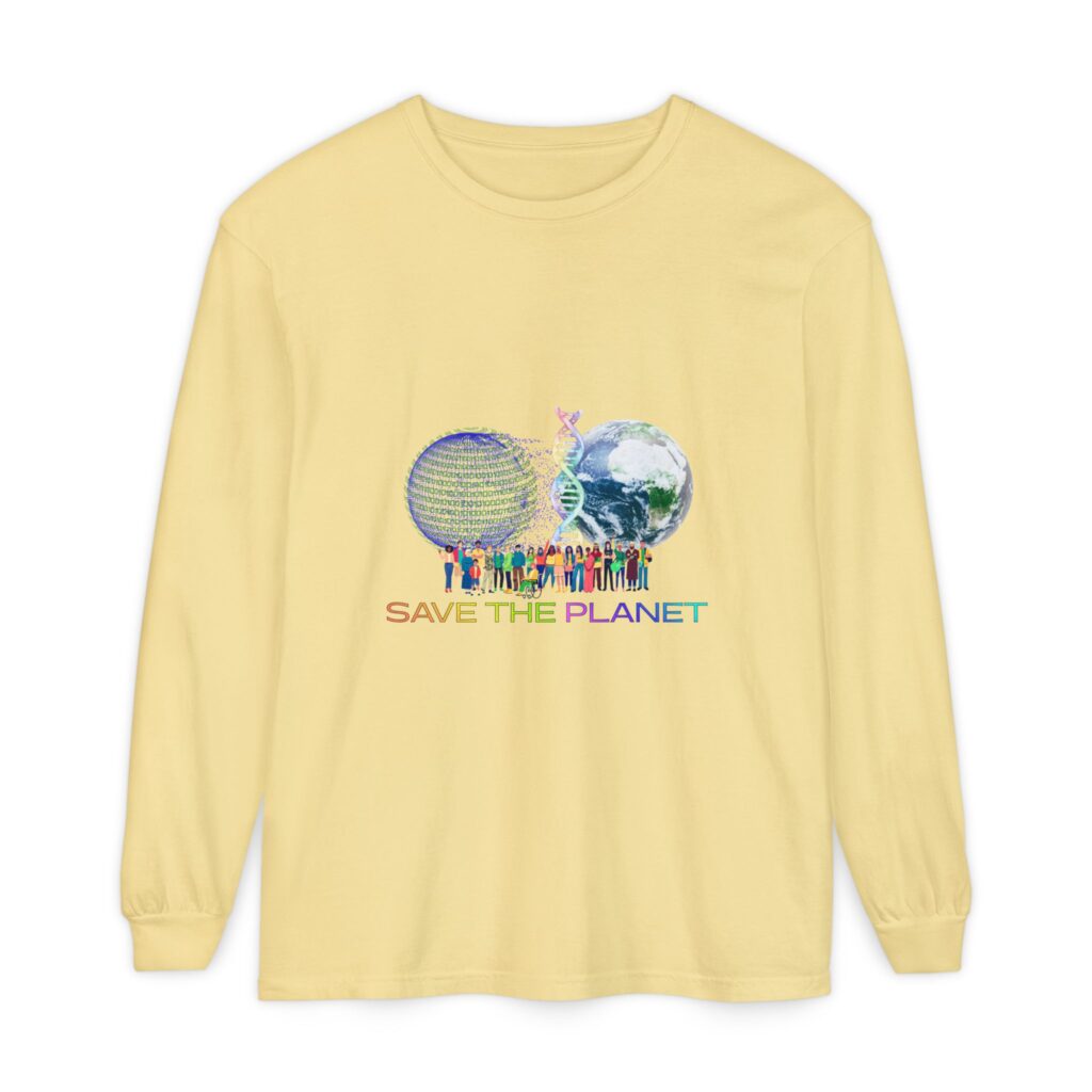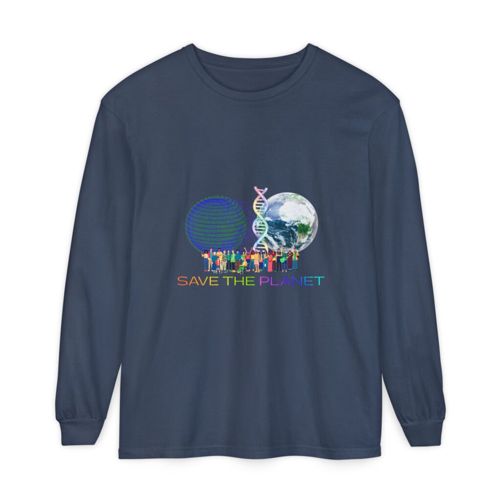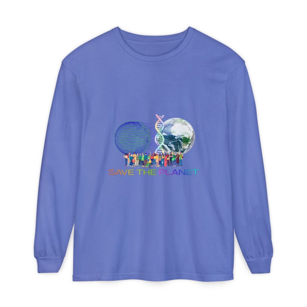 Enjoy ultimate comfort with this Save the Planet unisex garment-dyed long sleeve shirt, crafted from durable heavyweight fabric and dyed for a lived-in look. Features the Save the Planet logo on the front side, the garment is pre-shrunken providing a relaxed fit and has ribbed cuffs with a classic width collar.
