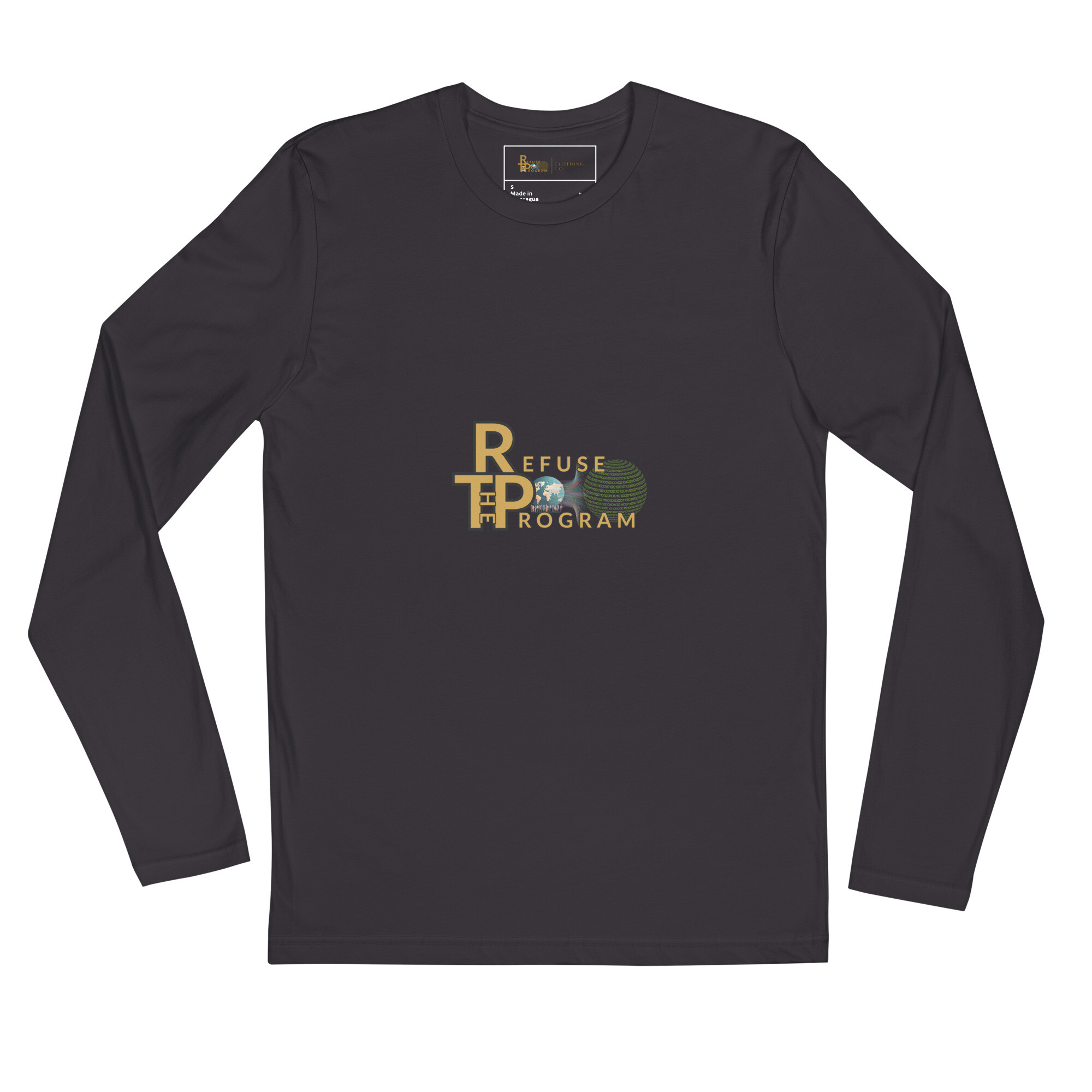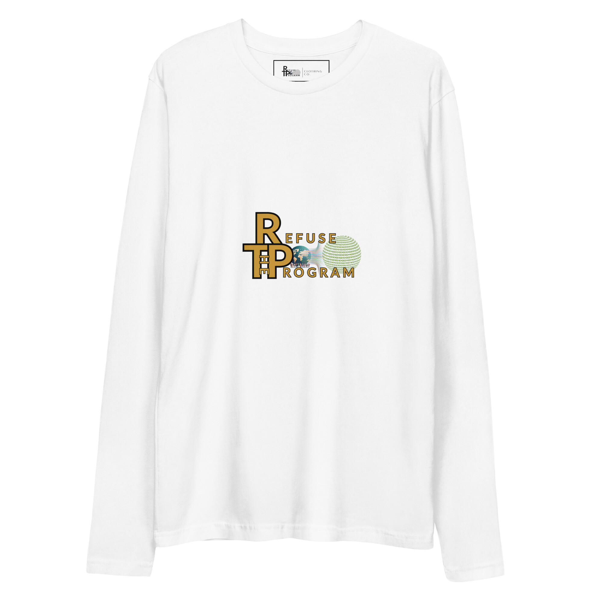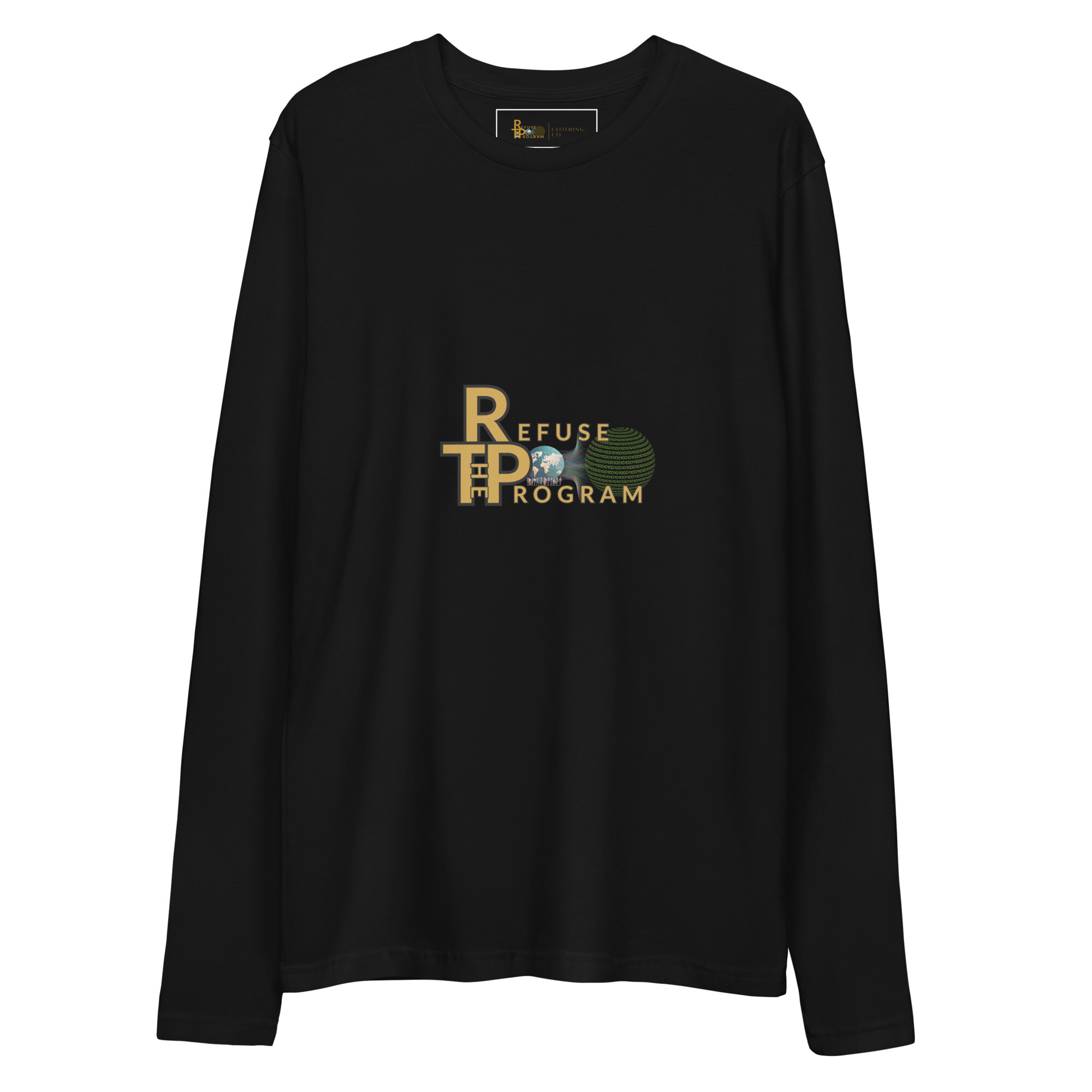 • Refuse the Program Logo Premium Cotton Long Sleeve Fitted Crew Neck Shirt for Men
