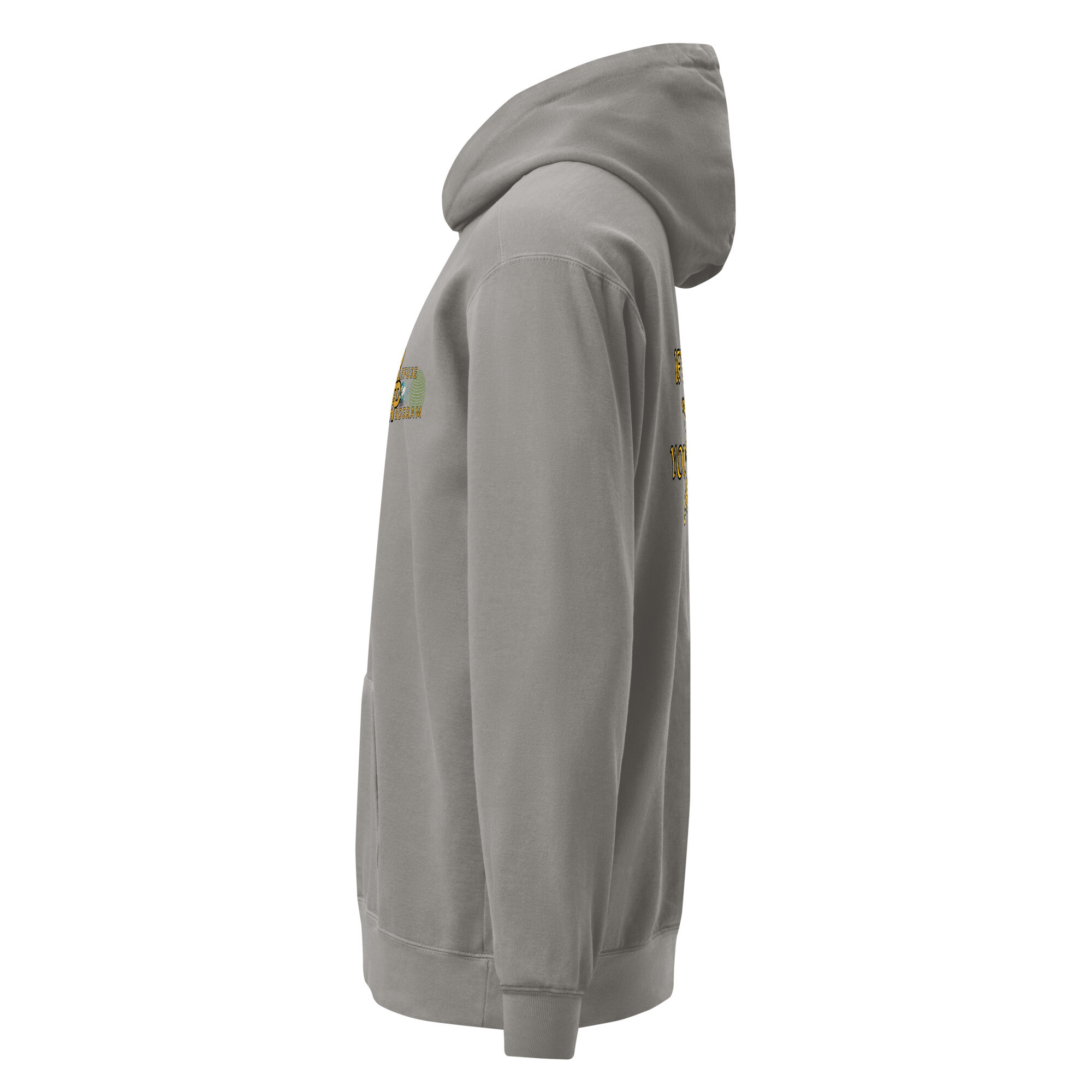 Slip into everyday comfort with this Refuse the Program slogan garment-dyed hoodie. Features the Refuse the Program logo on the front and the quote “If you are woke, You are not awake” on the back, its soft ring-spun cotton blend and relaxed fit make it an easy favorite for layering or lounging.