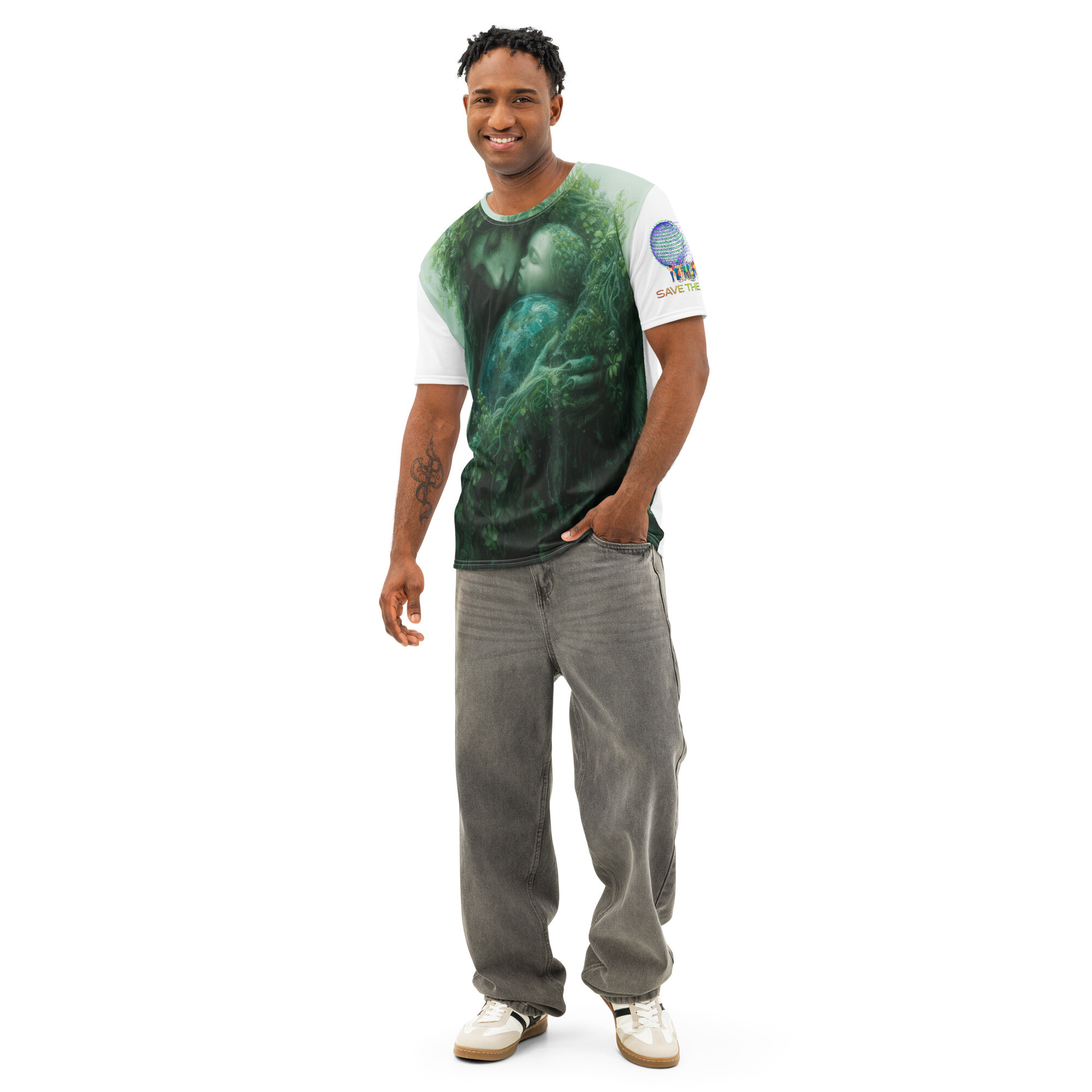 • Save the Planet “Mother Nature’s Embrace” Graphic Print Cotton Short Sleeve Shirt for Men
