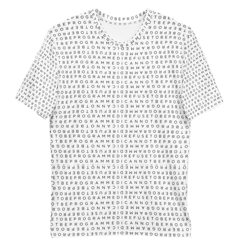 • I Refuse to be Programmed Black Monogram on White Fabric Men’s Short Sleeve Shirt