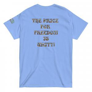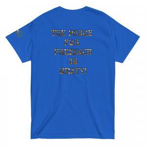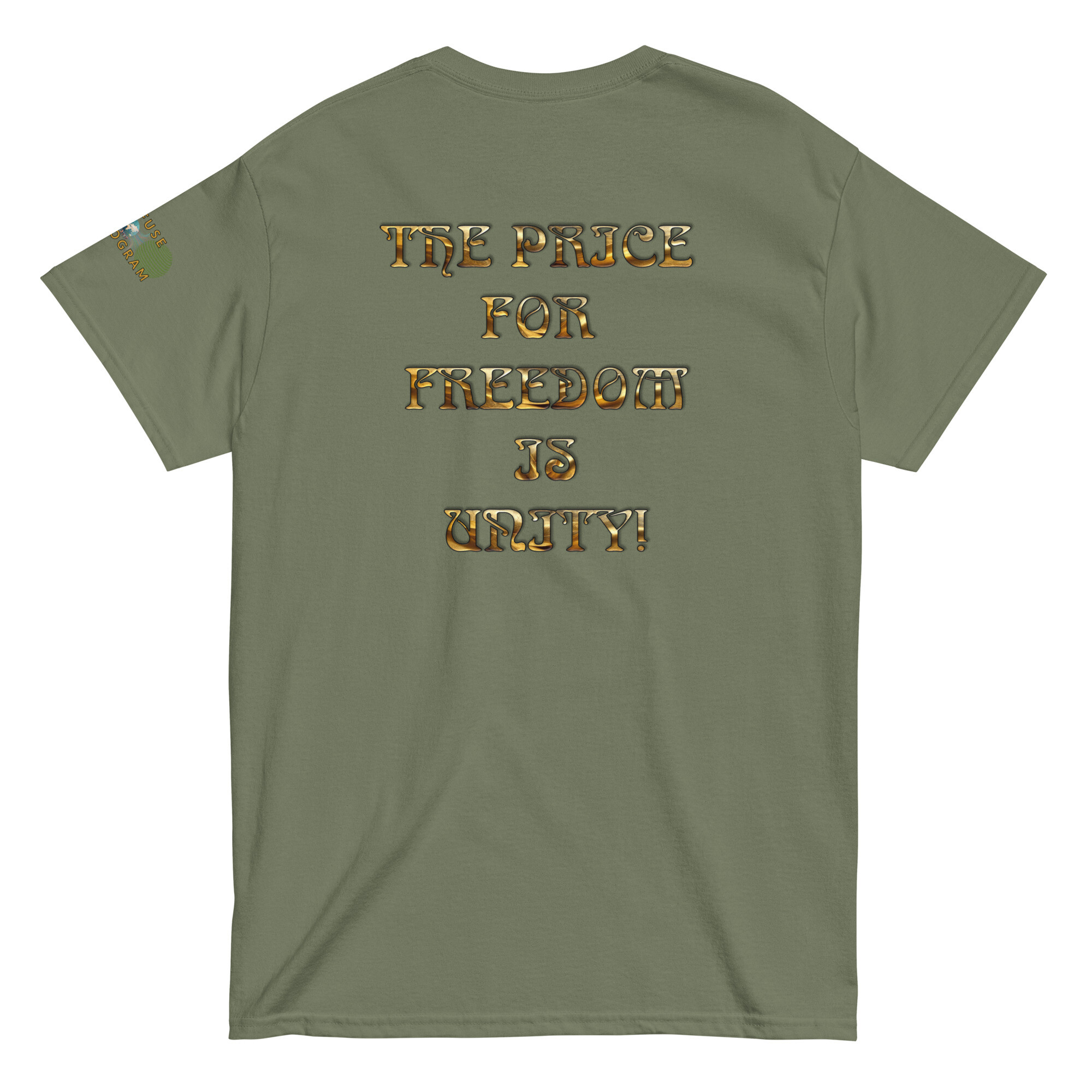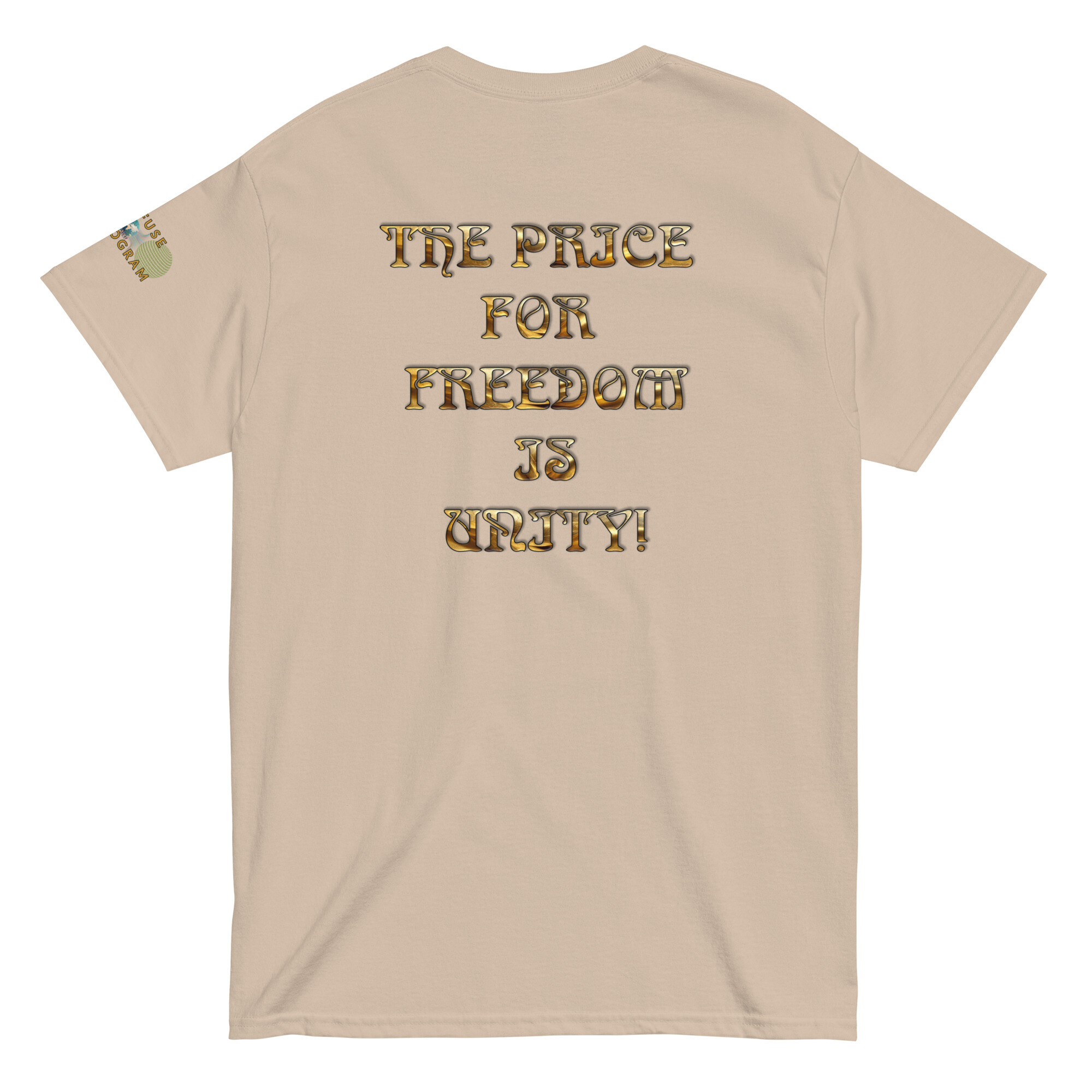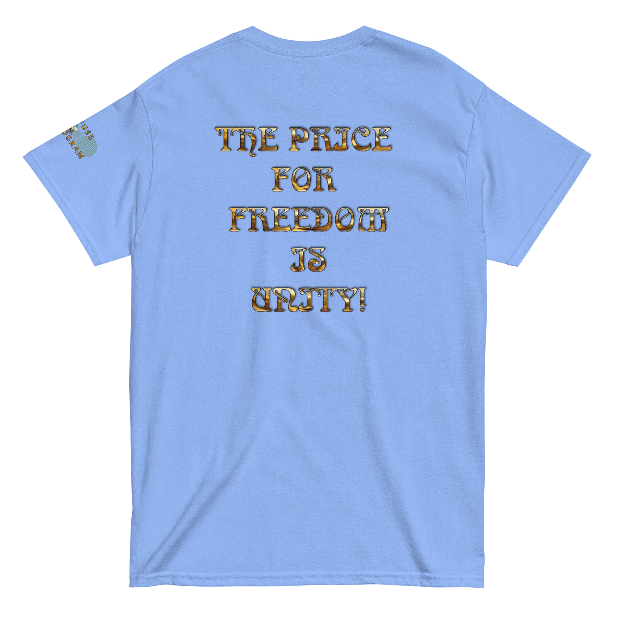 This Refuse the Program graphic slogan shirt features a variety of fabric base colors with “The Price for Freedom is Unity” printed in golden beveled font on the back with a Refuse the Program logo on the sleeve. Some colors have a mix of cotton and polyester with cotton being the primary base and are designed for men and women providing a unisex applicable fit. One of Abraham Lincoln’s most notorious speeches “A house divided against itself, cannot stand.” (Quoting Mark 3:25). This quote which originates in the bible stands as an absolute reality despite people allowing themselves to be misdirected through divisive tactics used in modern media. People have been led to believe they must align to one label or another and that the enemy is the other side. This is one of the most successful methods that has been used to insure that people continue to see these “labels” as the enemy instead of the enemy that truly is behind the illusion.
