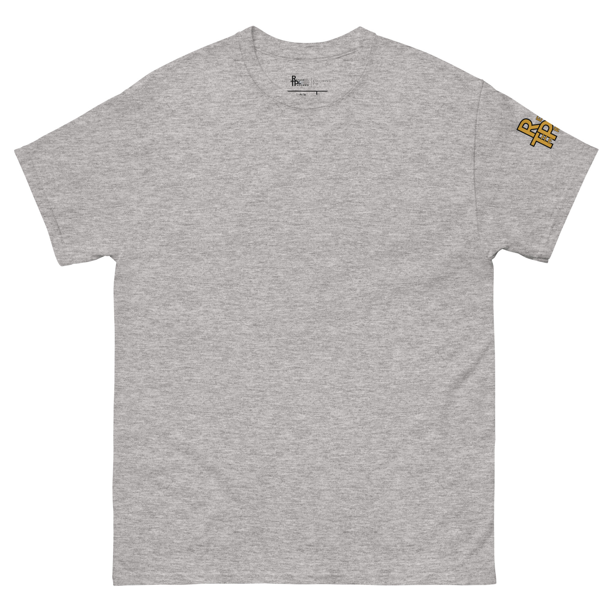 • Grey: Featuring the RTP gold logo on the front and IR2BP black monogram on the back.