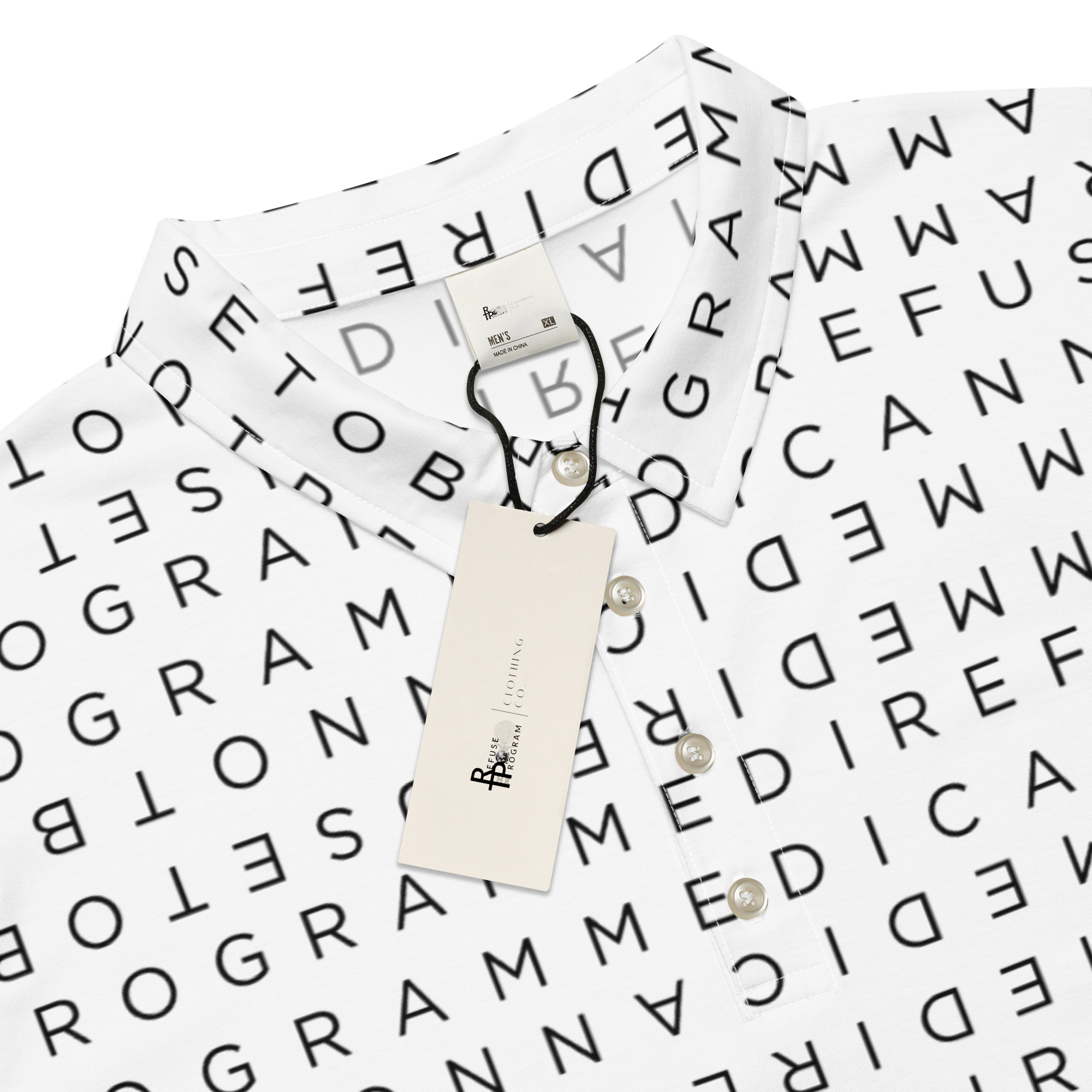The standard original designs feature slim font text in either black, signature gold and white. These are the original formats for the I Refuse to be Programmed series items and can be seen in the following example items: