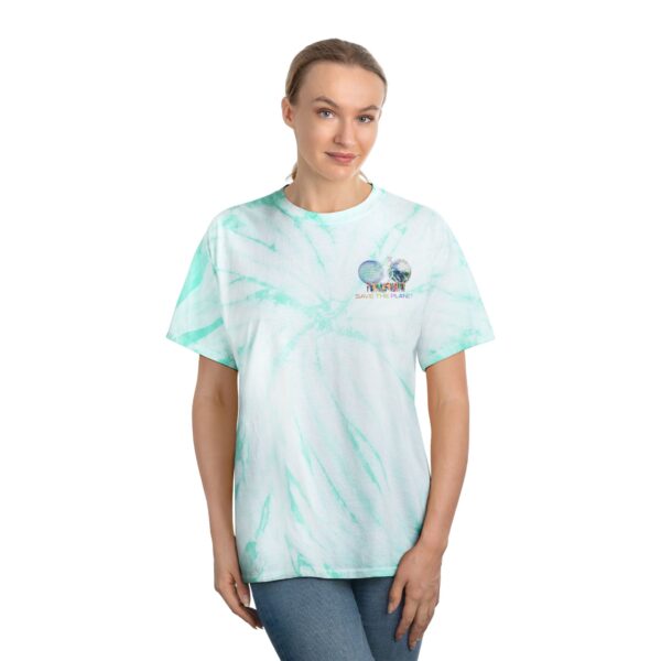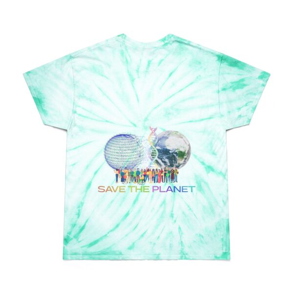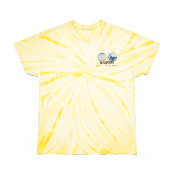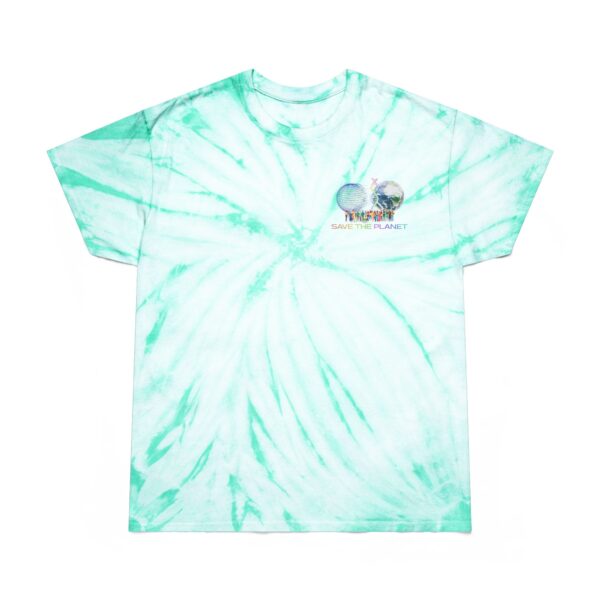 Get your groove back with this custom tie-dye Save the Planet tee shirt. For stylish, laid-back appearances, this t-shirt is made with 100% pre-shrunk cotton for total softness, and features a cyclone pattern straight from the 60s. The shoulder-to-shoulder taping adds extra durability at the t-shirtโs stress points while the double-needle stitched neckline and bottom hem add extra overall resilience.