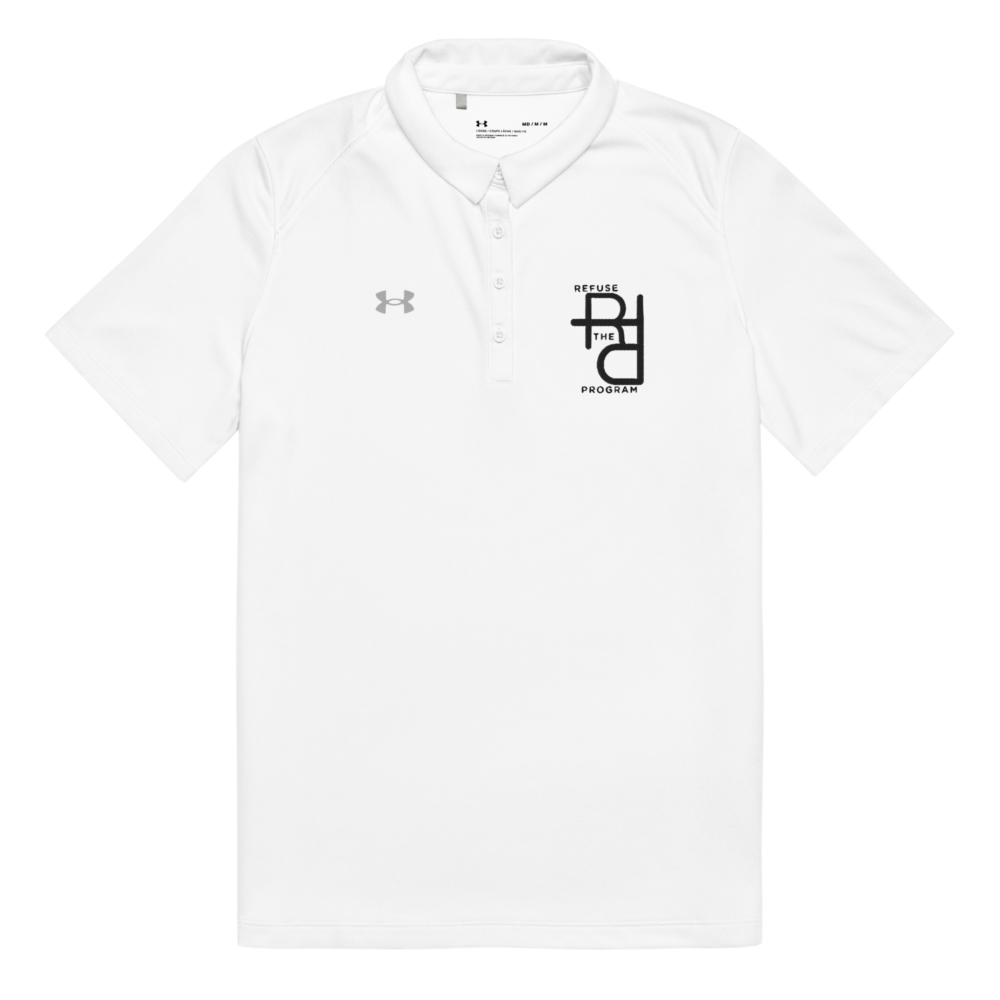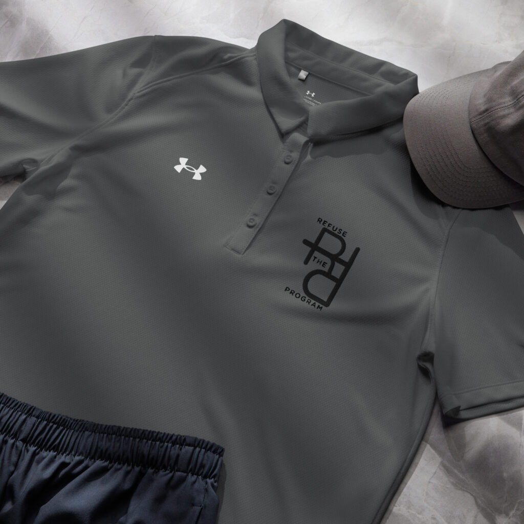 The Refuse the Program “RTP Black Logo” is embroidered on this Under Armour polo shirt designed for peak performance, this polo features anti-odor technology and breathable, lightweight fabric. Stay fresh and comfortable whether you’re hitting the gym, running errands, or enjoying a casual outing.