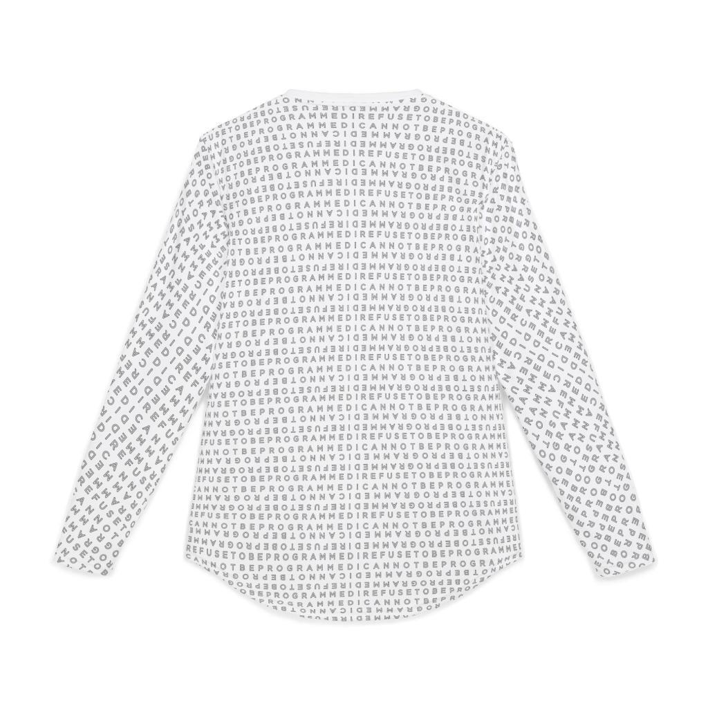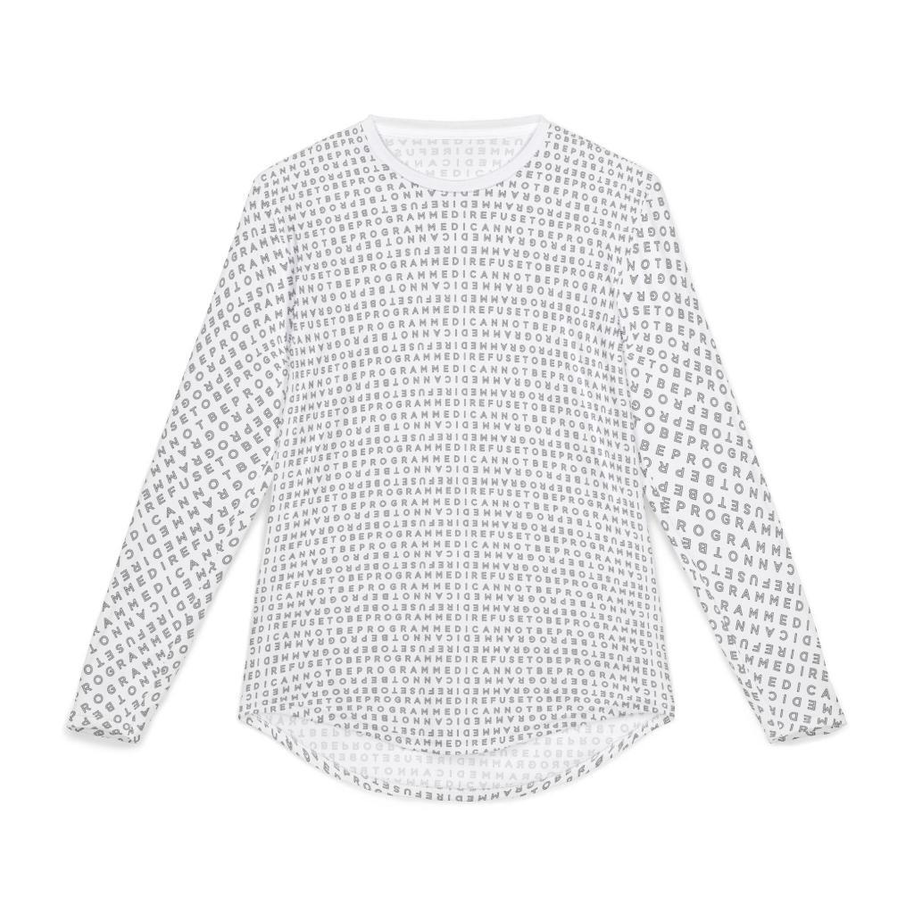 This Men’s I Refuse to be Programmed outline monogrammed long-sleeve shirt offers UV Protection, combines comfort and functionality and provides an athletic edge. Featuring a hemmed sleeve and shoulder tape for added durability, this shirt is ideal for outdoor activities or everyday wear, balancing style and performance in one sleek design.
