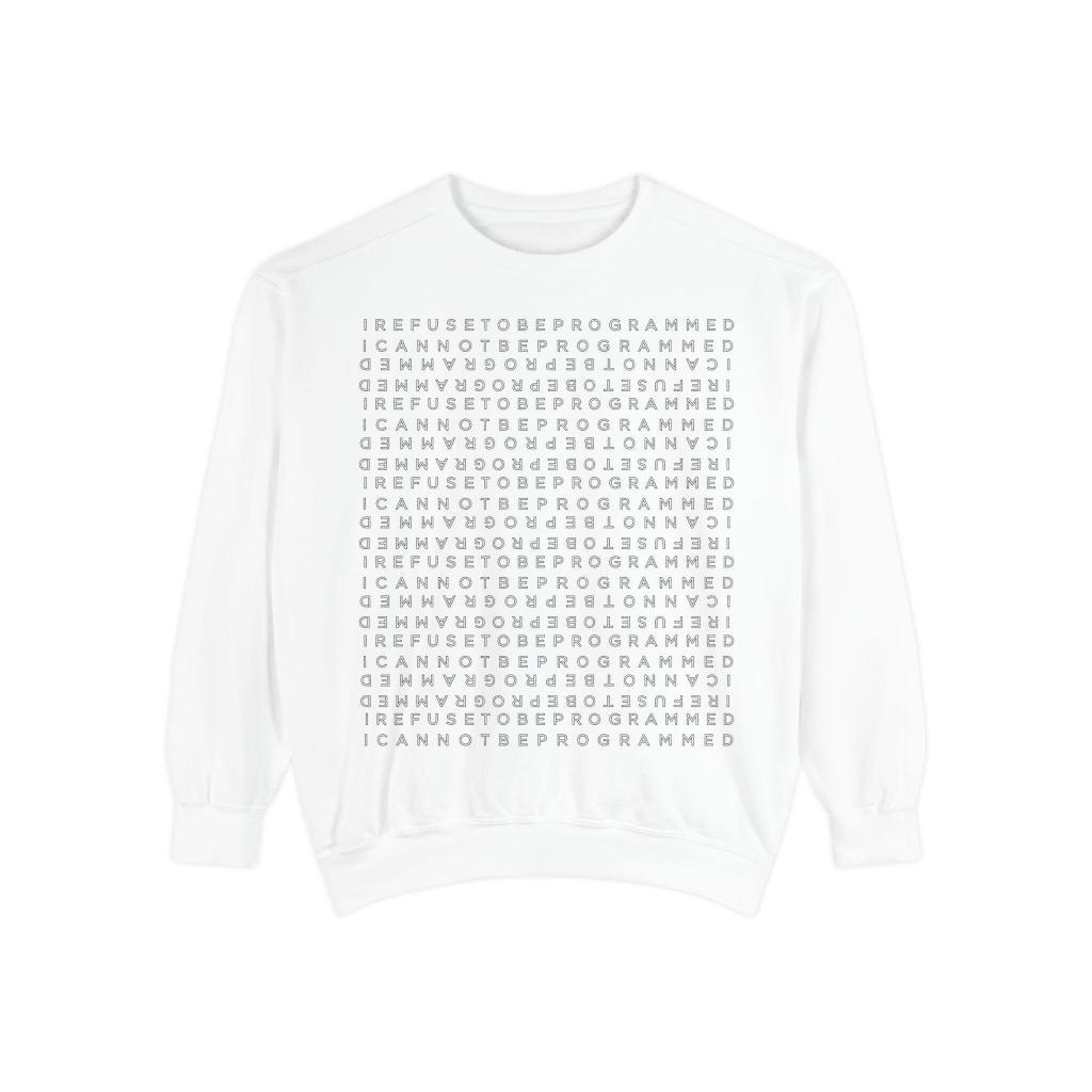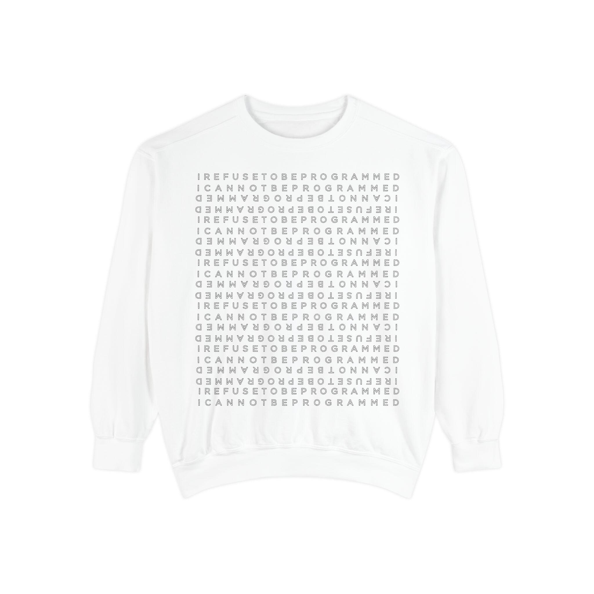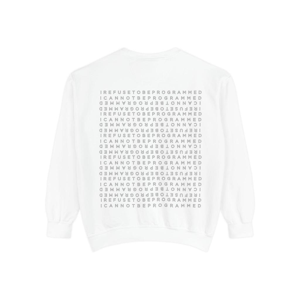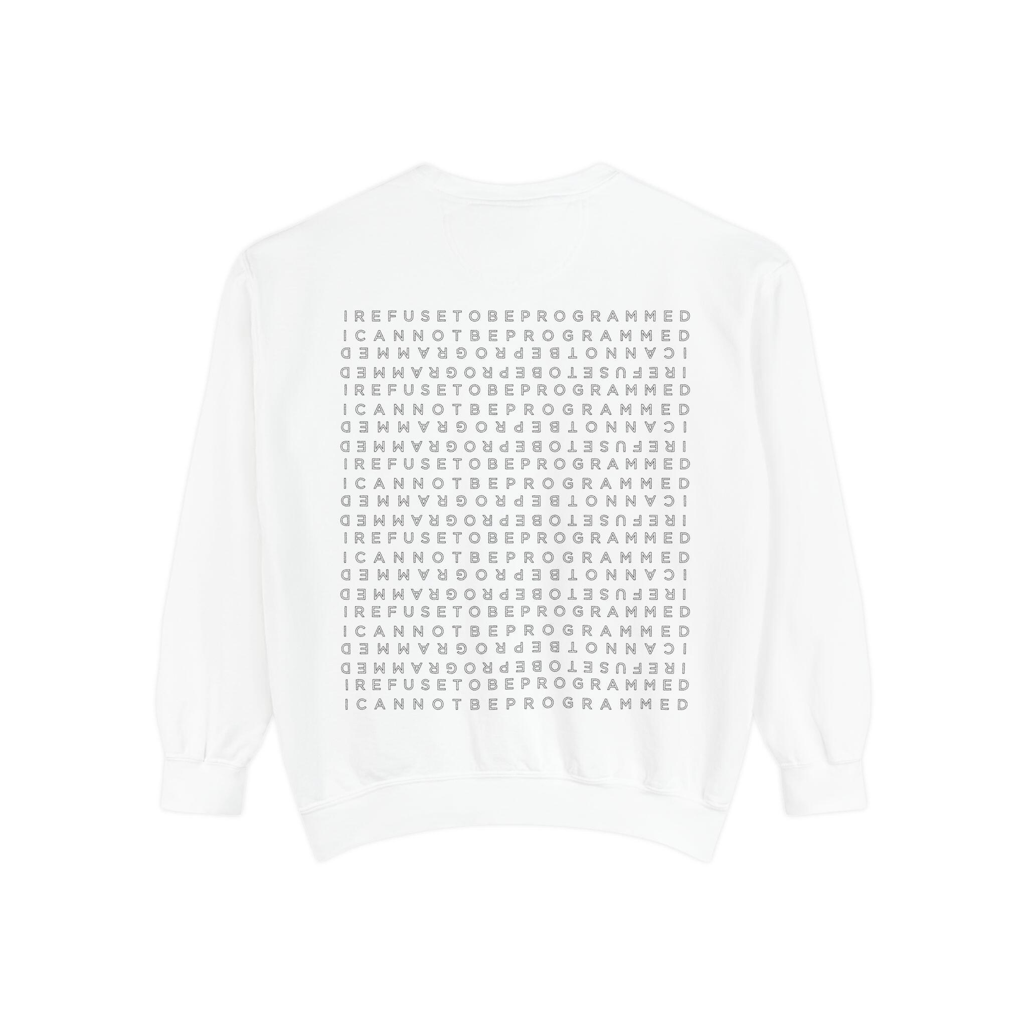 • I Refuse to be Programmed White Front and Back Monogram Cotton Men’s Sweatshirt