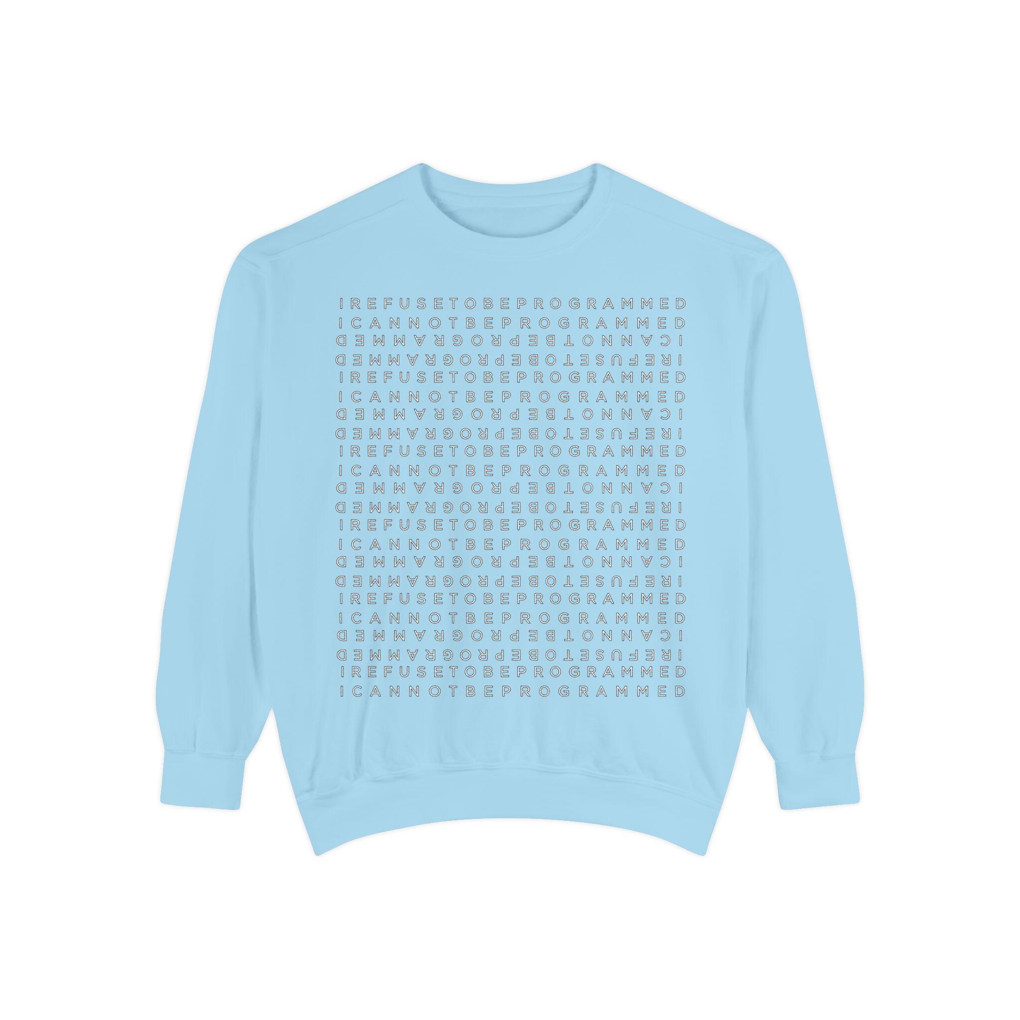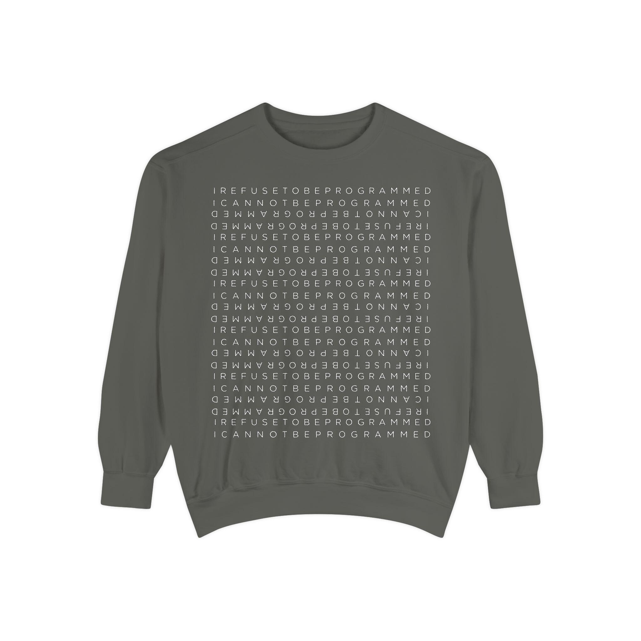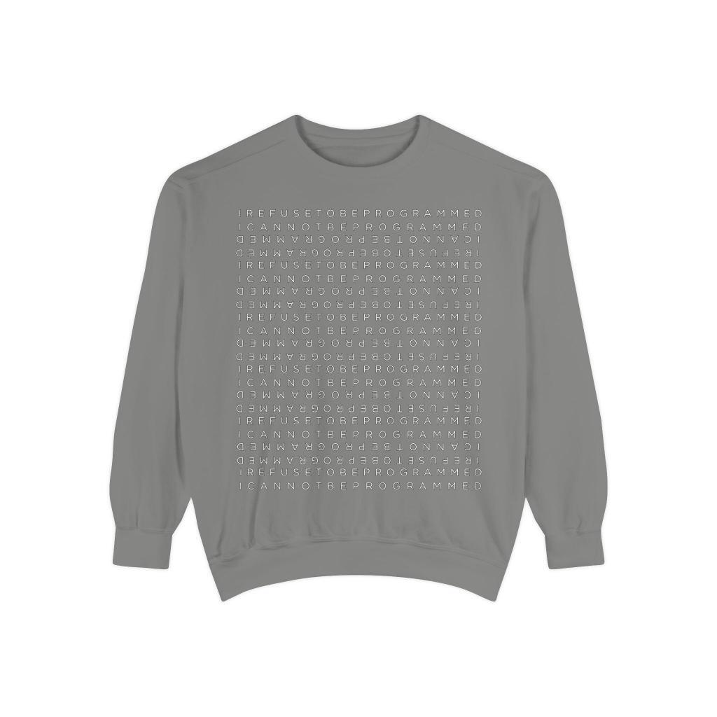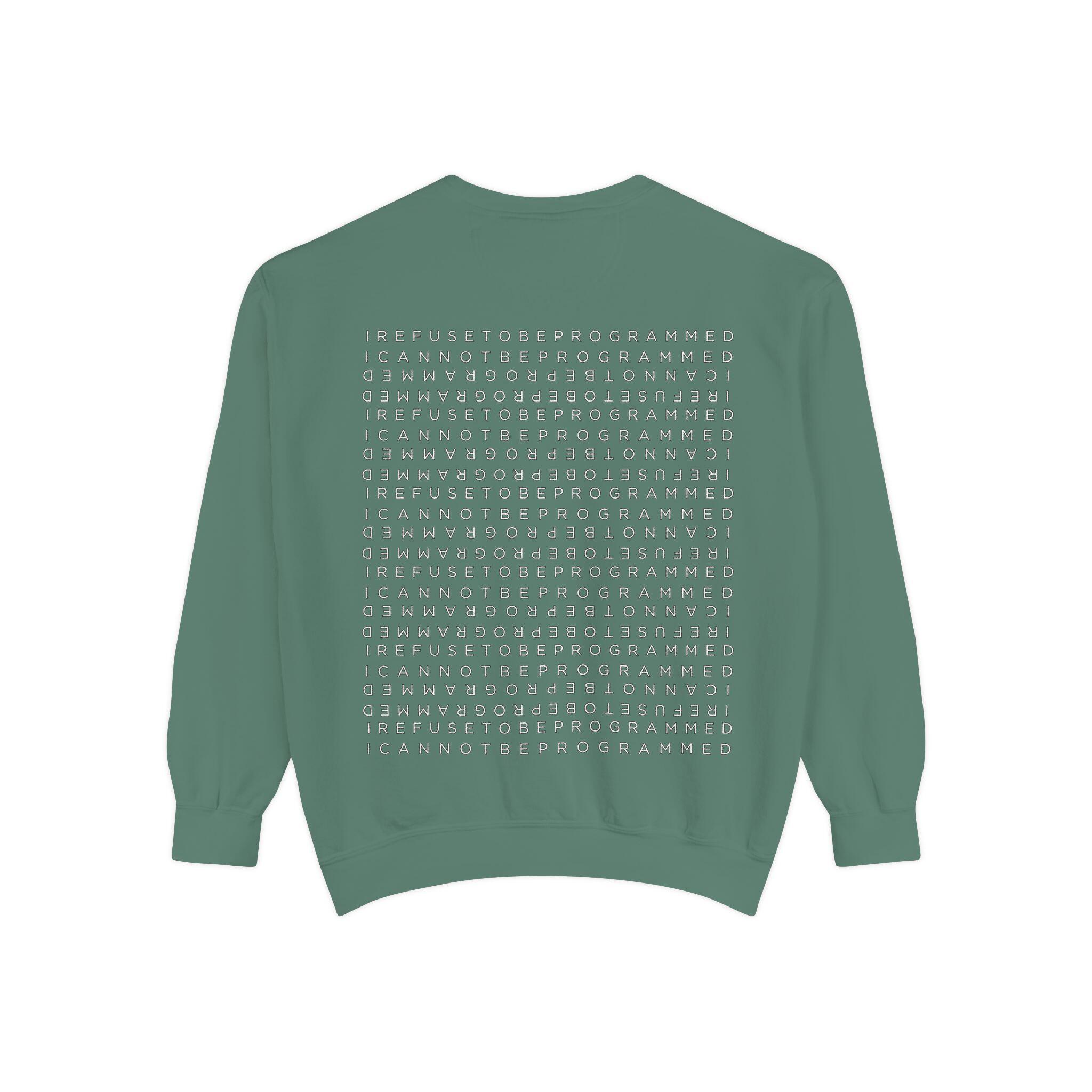 • I Refuse to be Programmed White Front and Back Monogram Cotton Men’s Sweatshirt