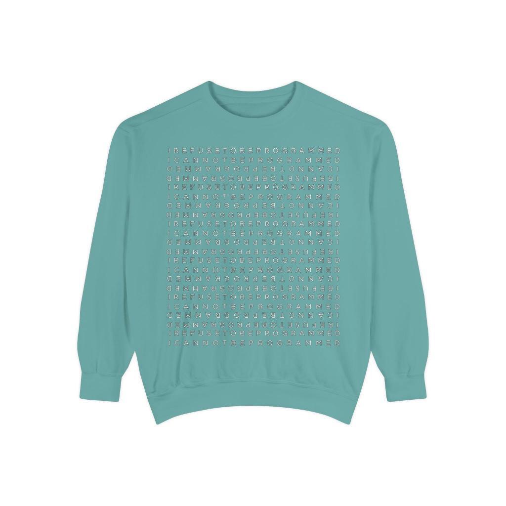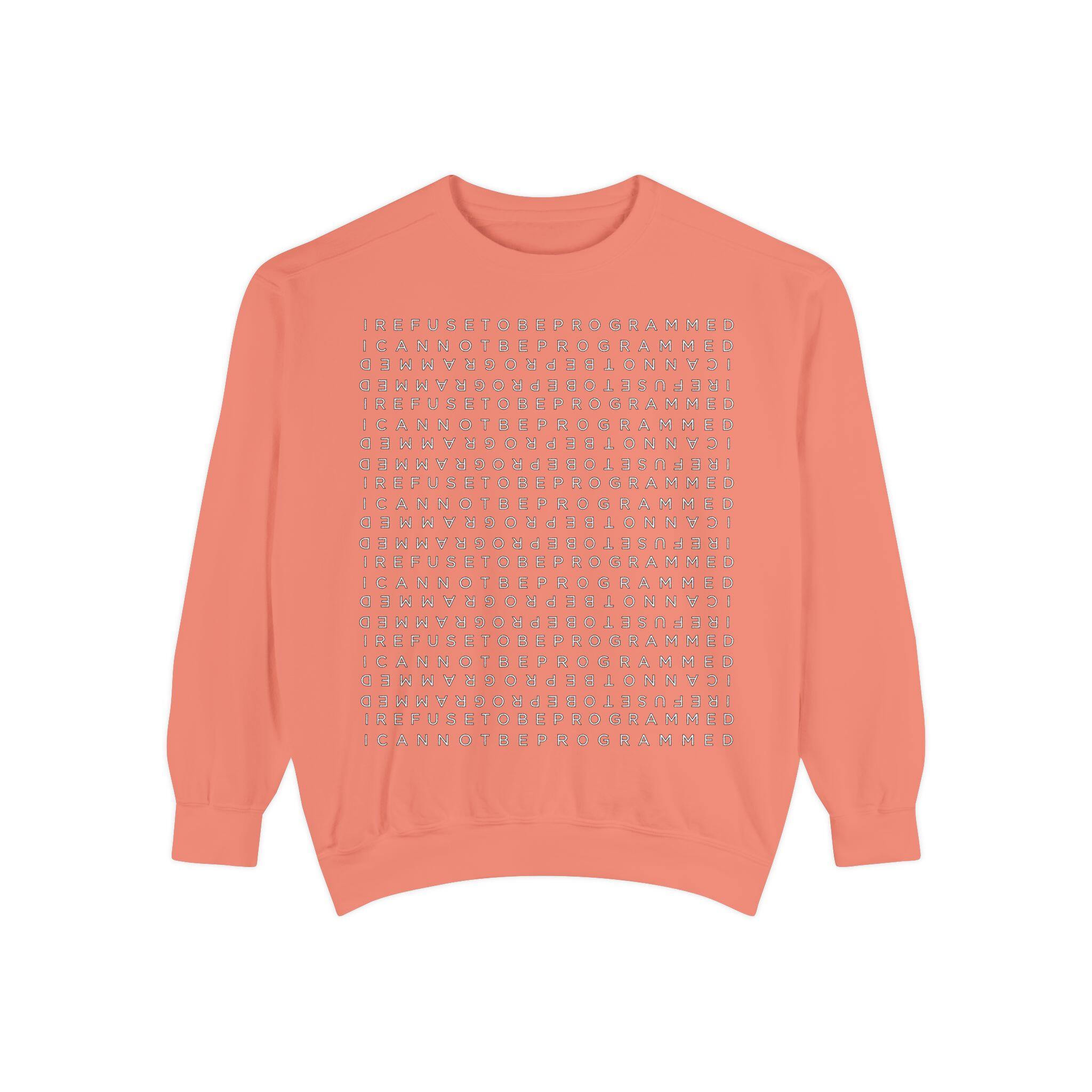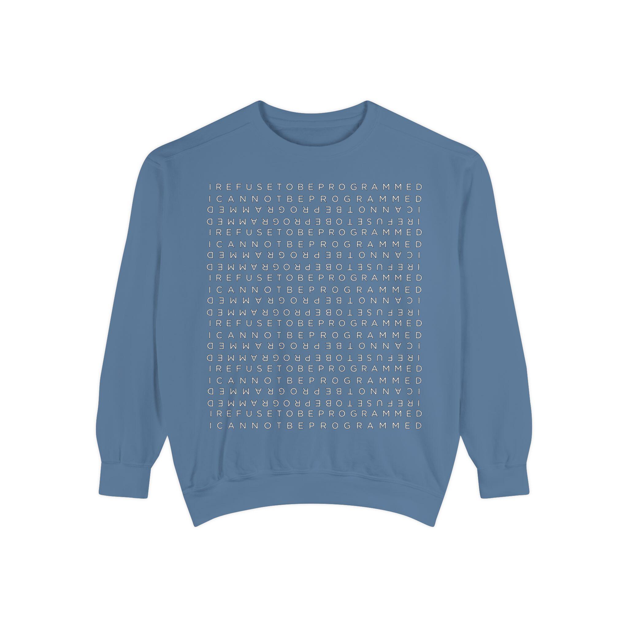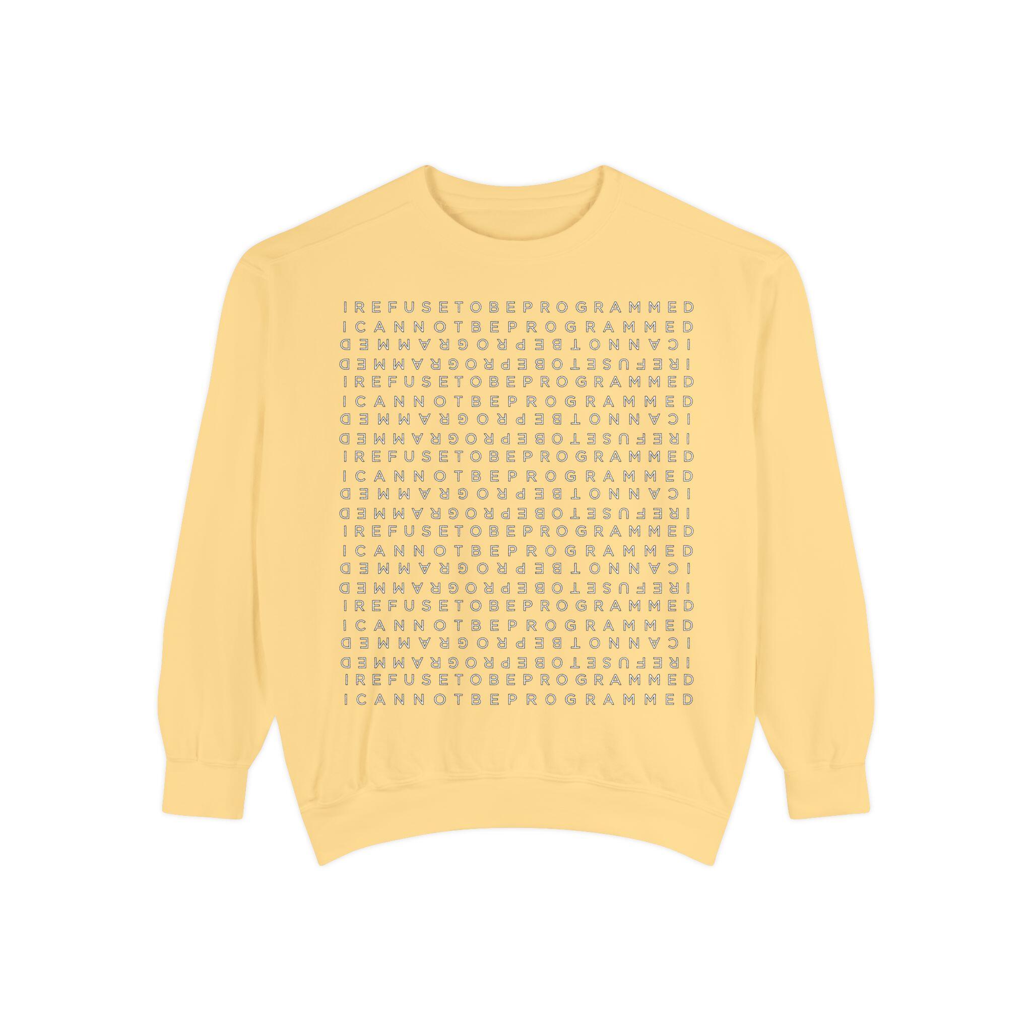 • I Refuse to be Programmed White Front and Back Monogram Cotton Men’s Sweatshirt