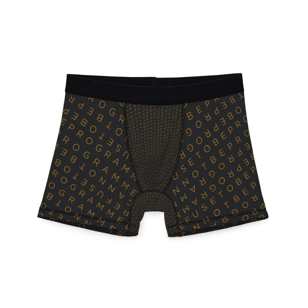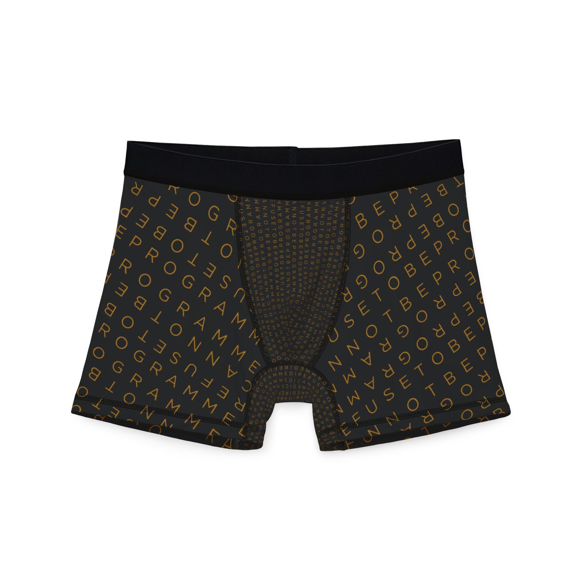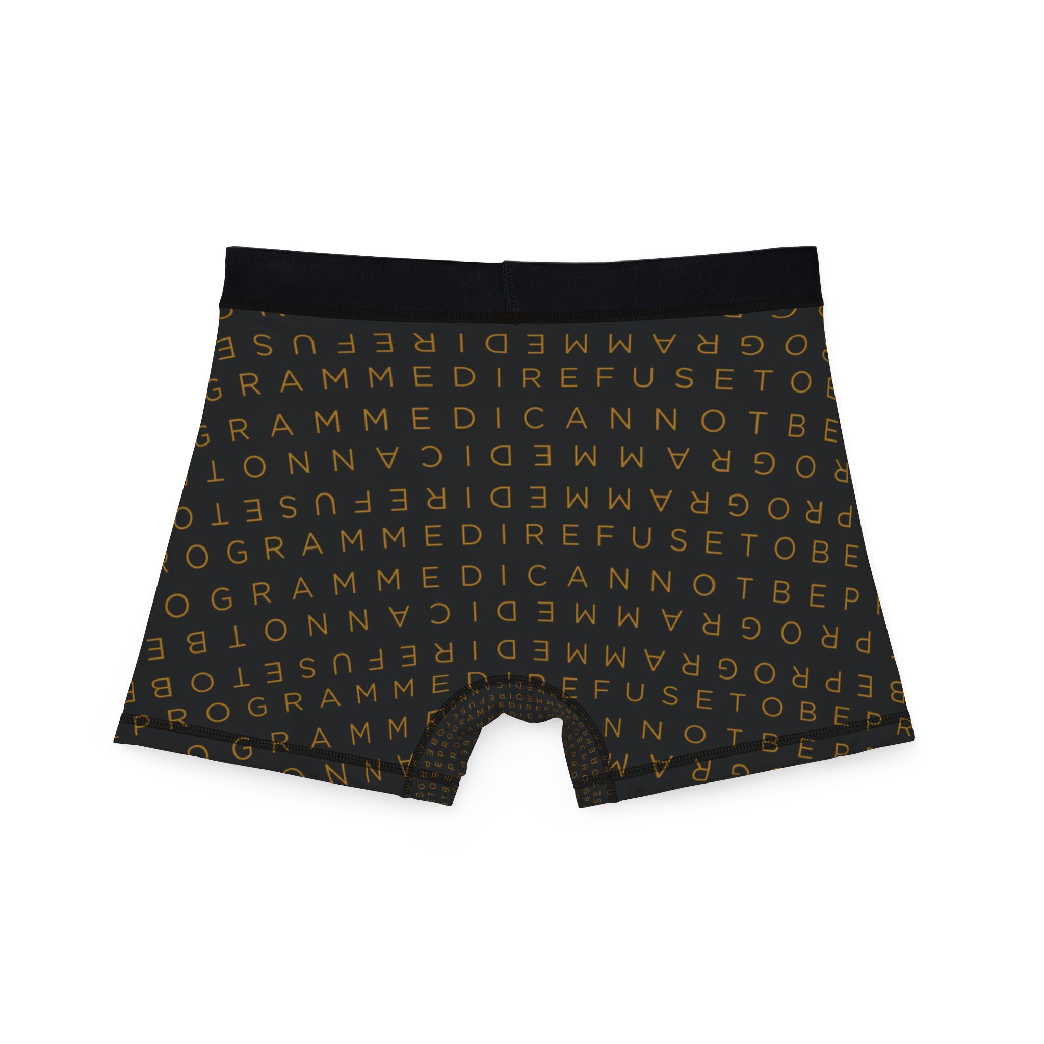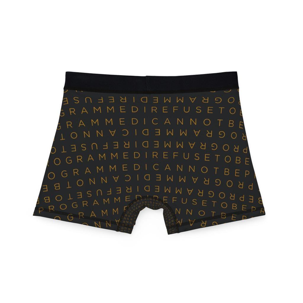 • I Refuse to be Programmed Gold Monogram on Black Men’s Boxer Briefs